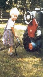 Waltraud Schneider beim "Startversuch" des damals neuen Schleppers